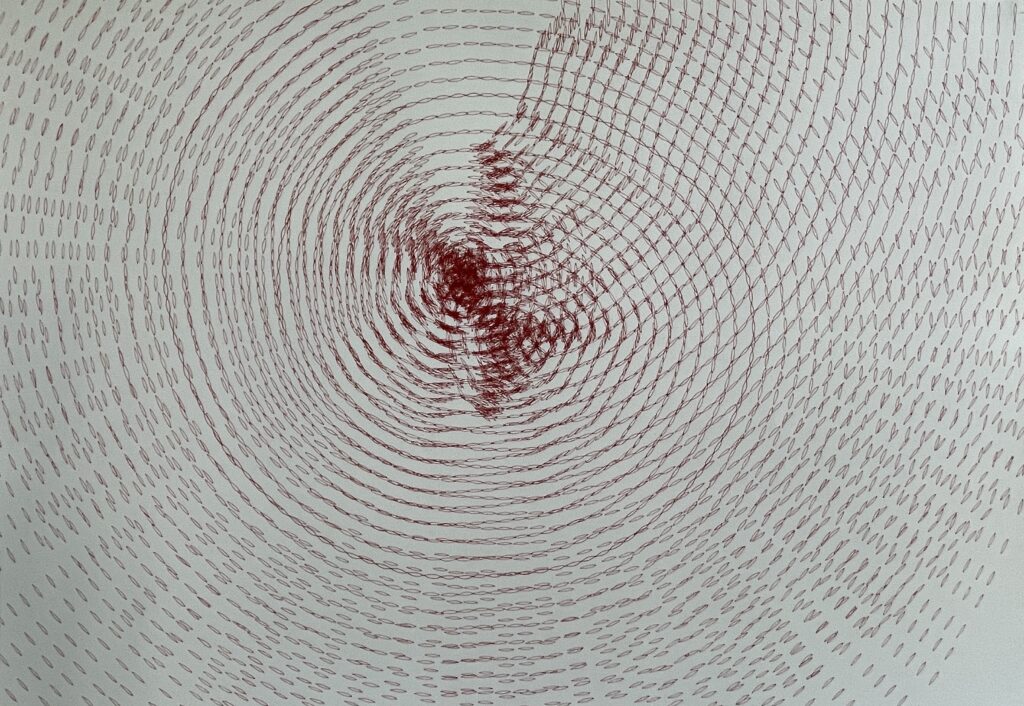 Kamilla Szij versucht mit ihren vielfältigen Zeichnungen und Technik diese als Konzentrate darzustellen, sie schafft einen Teil der sich wiederum auf das Ganze bezieht. Hierbei entsteht die Zeichnung oft nach dem Motto “Ich zeichne weil ich suche.” Diese Reise der Suche wird von Begriffen wie Kaltnadel, Papier, Bleistift, Reduktion, Struktur, Regeln, Entscheidungen, Element, Linie, Verdichtung, Lichtung untermalt und und prozesshaft vorangetrieben. Diese Begriffe sind zum Teil als Werkzeug zu sehen, sie unterstützen den Weg um die Substanz dieser Findung zu stärken. Ihre Zeichnungen stehen für das Positive das die Welt braucht, den Zugang zum natürlichen Prozess und dessen Darstellung.