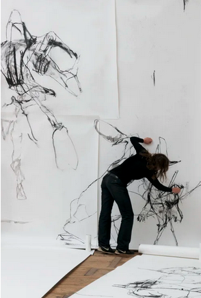 Linien sind für mich autonome Entitäten. Jede einzelne ist auf der Suche nach etwas, was sie darstellen könnte. Manchmal scheint es mir, als stiegen Urwesen aus dem Unterbewussten aufs Papier, und alle stehen sie zueinander in einer Beziehung. Man denke an Fütterung, Liebkosung, Angriff, Verwundung, an Wachstum oder Umwandlung. Im Laufe der Zeit sind meine Zeichnungen immer grösser geworden, und eines Tages bot ein Blatt Papier den Linien nicht mehr genügend Raum, sich zu entfalten. Ich fing an, in Räumen zu zeichnen, die vollständig mit Papier bedeckt sind. Diese Zeichnungsinstallationen sind mit Kohle und Tusche bezeichnete Räume, die man betreten kann. Man ist umgeben von der Zeichnung und steht auf der Zeichnung. Als Betrachter ist man selbst Teil der Zeichnung.