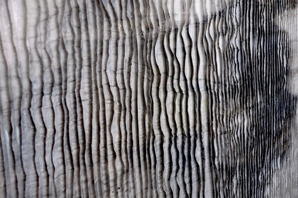 Das Innere des Objektes lebt durch seine Strukturen, Schichten und Sequenzen. Die Öffnungen und Durchblicke geben immer wieder neue Bilder frei. Die Zwischen-räume kreieren jedoch die eigentliche Inhalte und können als eine Erweiterung des Raumes betrachtet werden. Räumliche Strukturen beginnen sich zu überlagern oder zu verschmelzen. Durch eine subtile Bewegung des Objektes werden Intervalle in der Zeit sichtbar und diese kreieren wiederum unterschiedliche visuelle Perspektiven. Somit entsteht eine INTERAKTION mit dem Raum, dem Werk, den BetrachterInnen und zwischen den ausstellenden Künstlerinnen und ihren Werken.