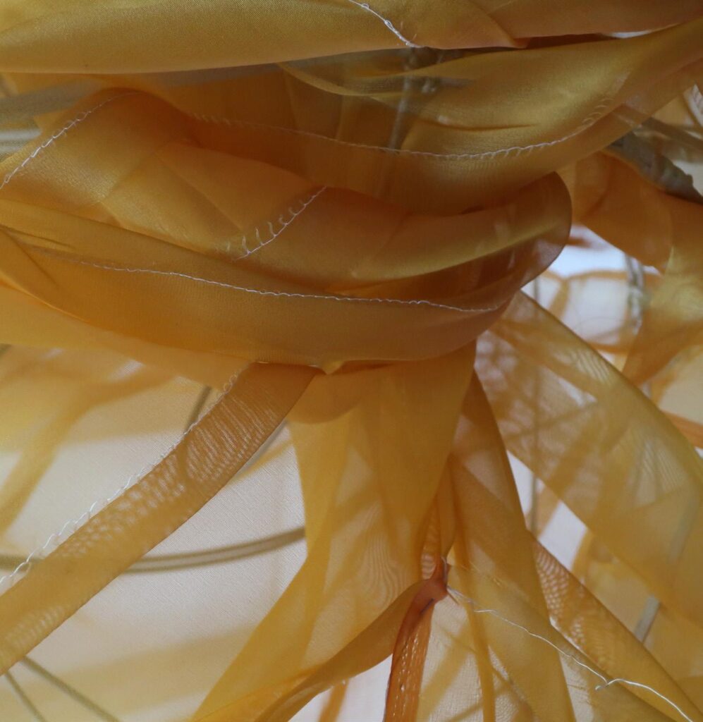 Der Diskurs mit dem Raum, sowie die Auseinandersetzung mit dem Thema Zwischen-raum bilden ein weiteres wesentliches Element in Schülke ́s Arbeiten. Dies betrifft beide ihrer Werkgruppen welche in dieser Ausstellung zu sehen sind. Sowohl bei dem Objekt, als auch den Stereoscopic Textile Images bilden Zwischen-räume eine zentrale Rolle.